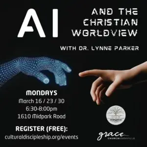 YOU ARE INVITED Join us for three Mondays in March as we explore the world of AI and the Christian worldview. Dr. Lynne Parker will help us understand what is going on behind the screens