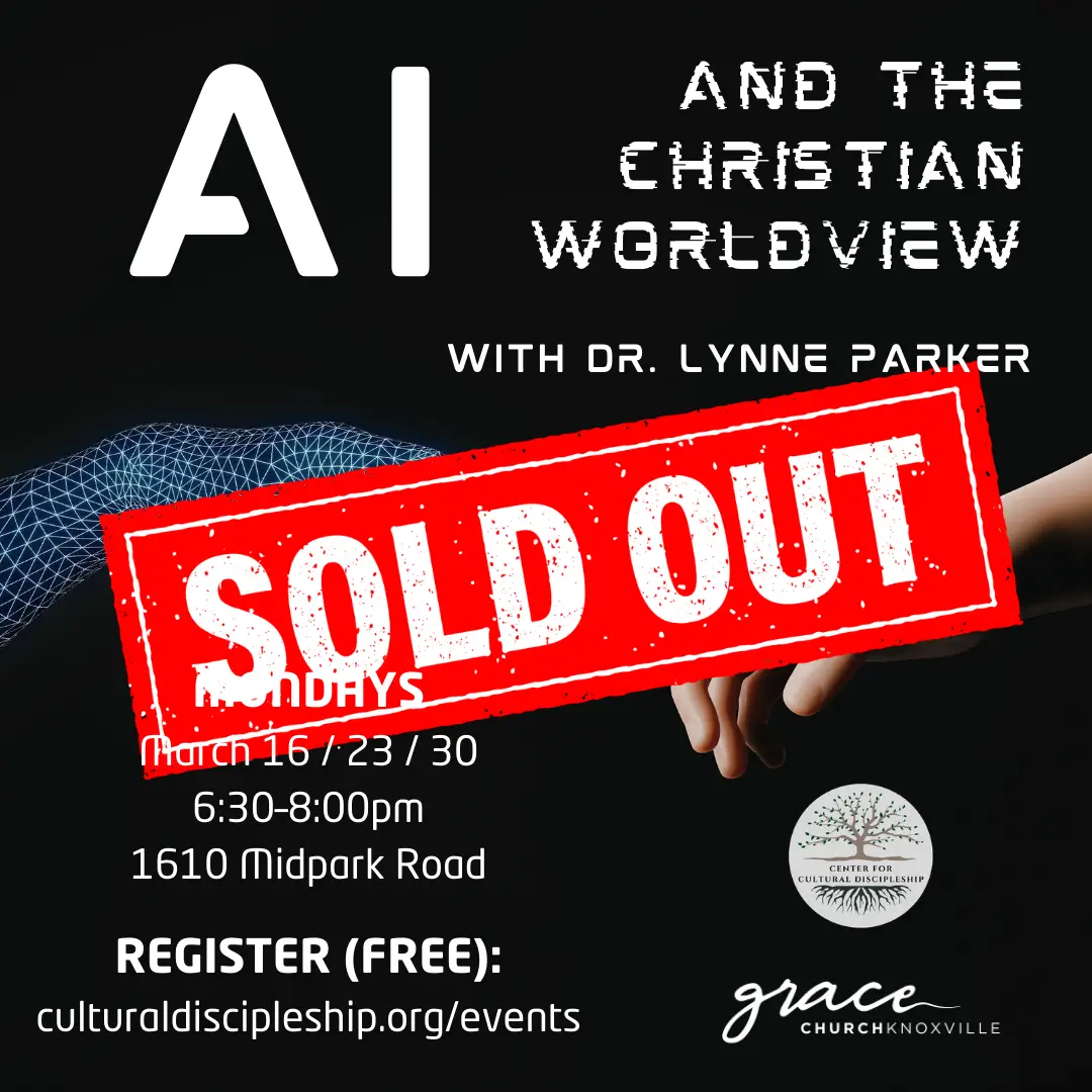 Join us for three Mondays in March as we explore the world of AI and the Christian worldview. Dr. Lynne Parker will help us understand what is going on behind the screens and conversations surrounding AI. What is myth? What is concerning? What is hopeful? How do we understand this moment of technological history in light of the Biblical Story? How do we live faithfully every day with AI at our fingertips?
